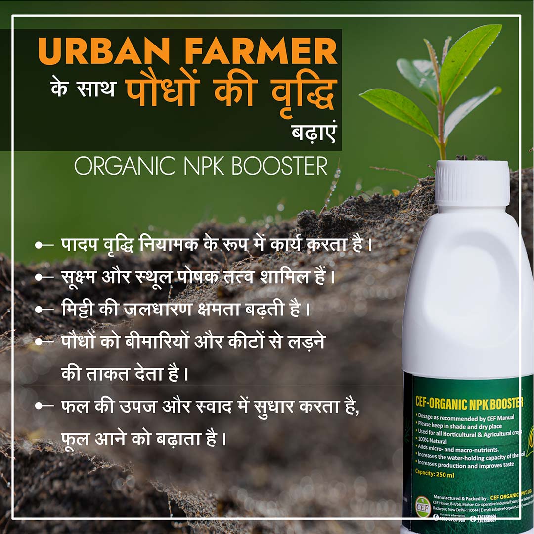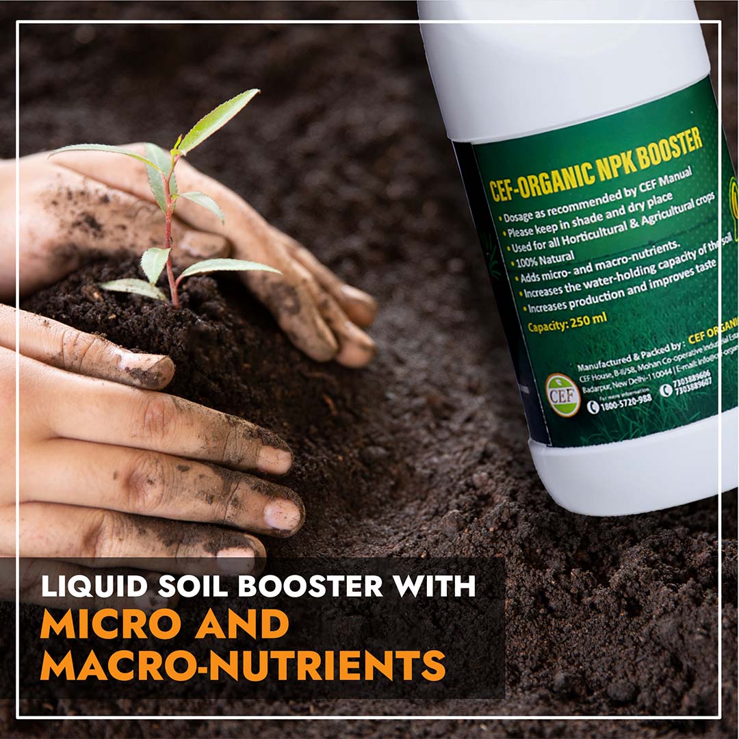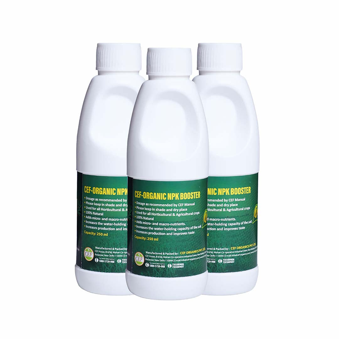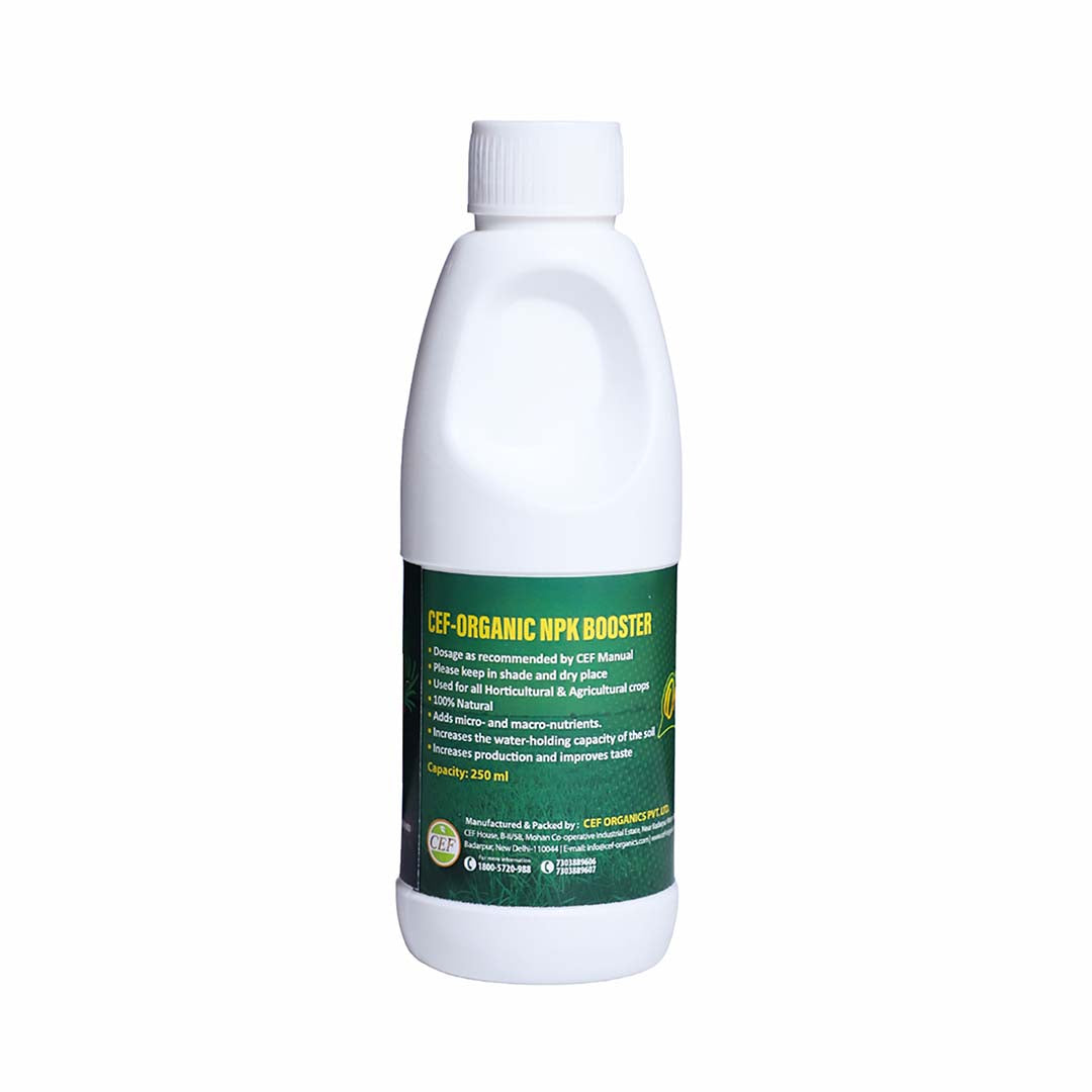 CEF Organic NPK Booster is a scientifically formulated plant nutrient solution designed to enhance crop yield and soil health. This organic formulation delivers balanced nitrogen, phosphorus, and potassium essential macronutrients that promote robust vegetative growth, stronger root development, and improved flowering and fruiting. Ideal for both commercial and home gardeners, it works synergistically with soil microbes to improve nutrient availability and plant resilience. Safe for organic farming practices, CEF Organic NPK Booster supports sustainable agriculture while maximizing productivity across diverse crop varieties.
